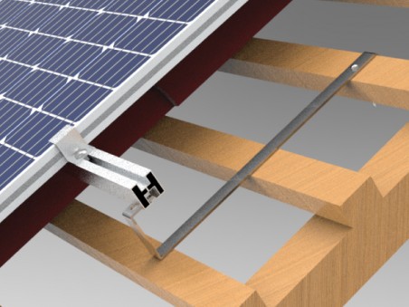 Mocowanie umożliwia zamocowanie kompletnego systemu wsporczego do dowolnej ilości paneli PV zarówno w układzie horyzontalnym na dachu skośnym pokrytym dachówką ceramiczną lub betonową.