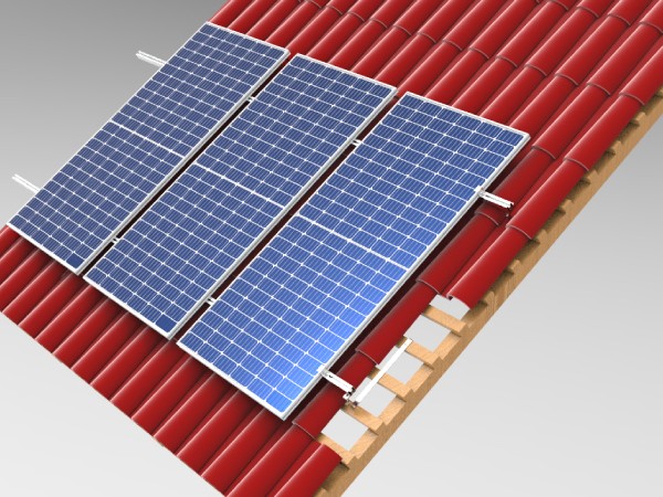 Mocowanie umożliwia zamocowanie kompletnego systemu wsporczego do dowolnej ilości paneli PV zarówno w układzie horyzontalnym na dachu skośnym pokrytym dachówką ceramiczną lub betonową.