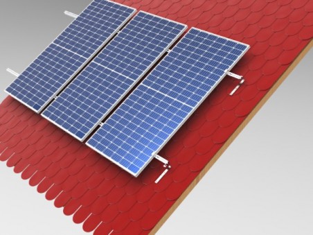 Mocowanie umożliwia zamocowanie kompletnego systemu wsporczego do dowolnej ilości paneli PV zarówno w układzie wertykalnym i horyzontalnym na dachu skośnym pokrytym gontem bitumicznym.