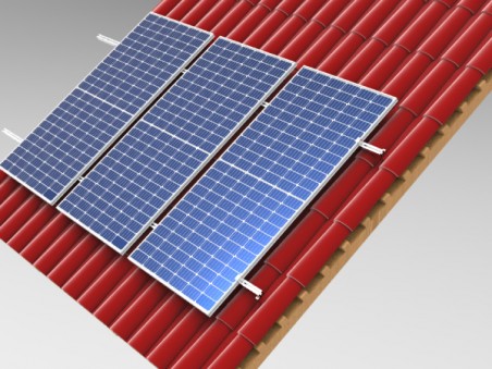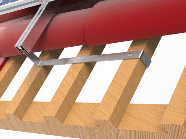 Mocowanie umożliwia zamocowanie kompletnego systemu wsporczego do dowolnej ilości paneli PV zarówno w układzie horyzontalnym na dachu skośnym pokrytym dachówką ceramiczną lub betonową.