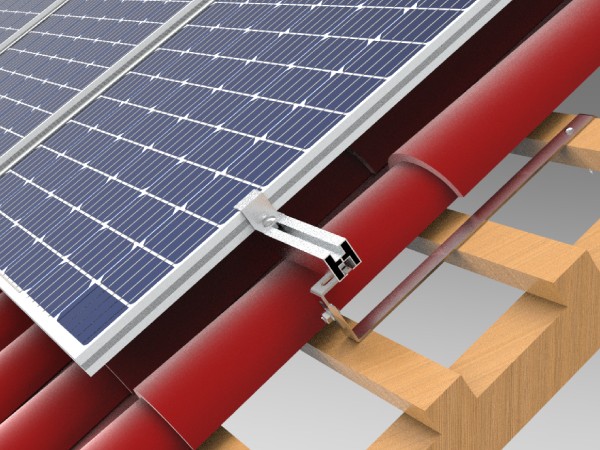 Mocowanie umożliwia zamocowanie kompletnego systemu wsporczego do dowolnej ilości paneli PV zarówno w układzie horyzontalnym na dachu skośnym pokrytym dachówką ceramiczną lub betonową.