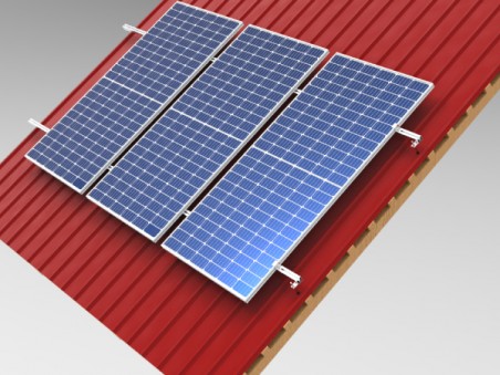 Mocowanie umożliwia zamocowanie kompletnego systemu wsporczego do dowolnej ilości paneli PV zarówno w układzie wertykalnym na dachu skośnym pokrytym blachodachówką.
